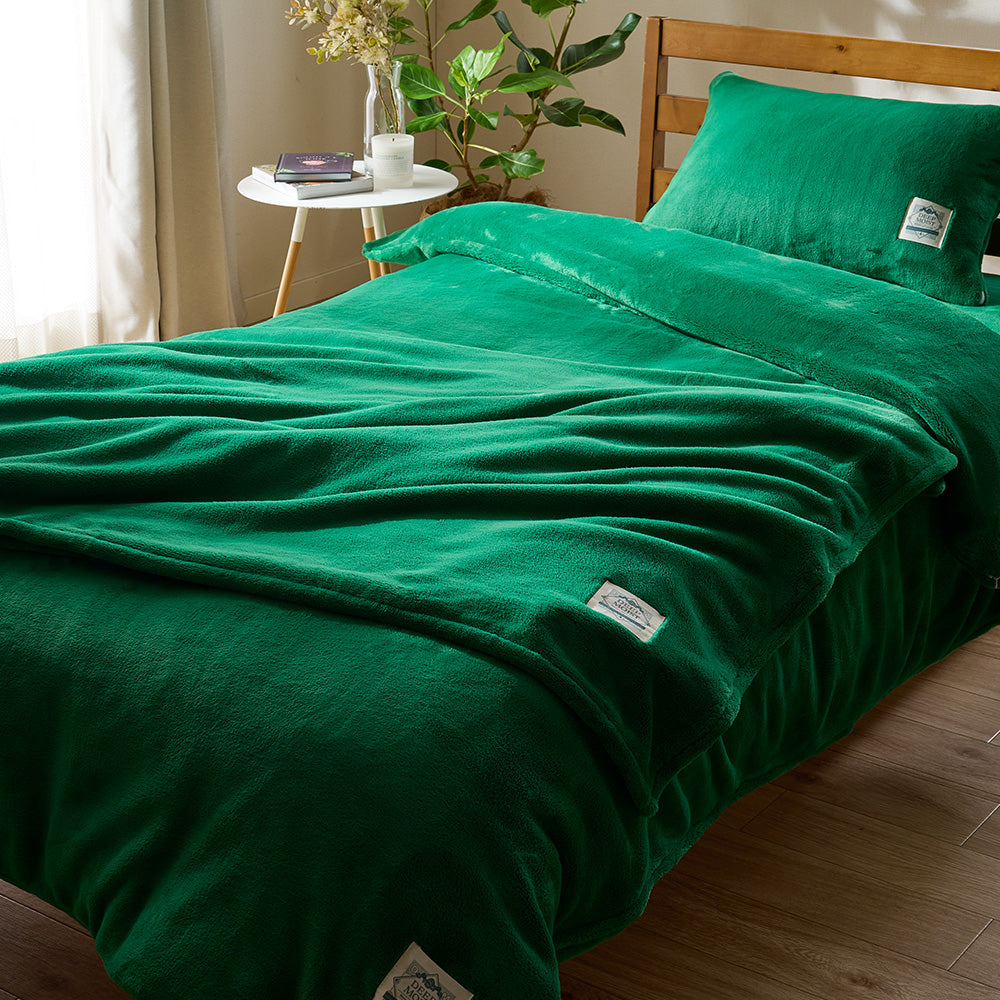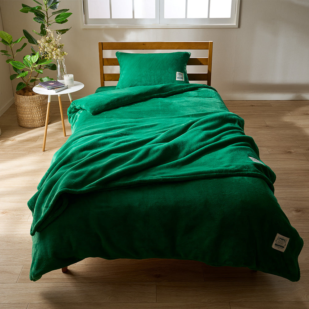 DEEP MOISTシリーズの寝具は、毛足の長い毛布生地を使用することで暖かい空気を貯めこみふわふわとやさしい寝心地に。生地の両面を起毛させているため、ボリュームたっぷりの仕上がりとなります。柔らかな毛布生地に、保湿成分をプラスすることでしっとりなめらかな肌ざわりが心地よさを引き出し良質な睡眠へと導きます。