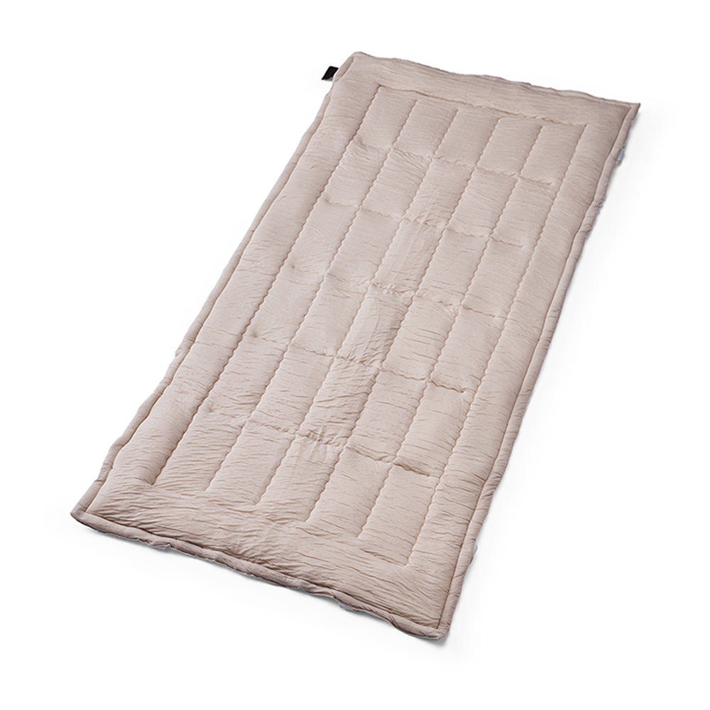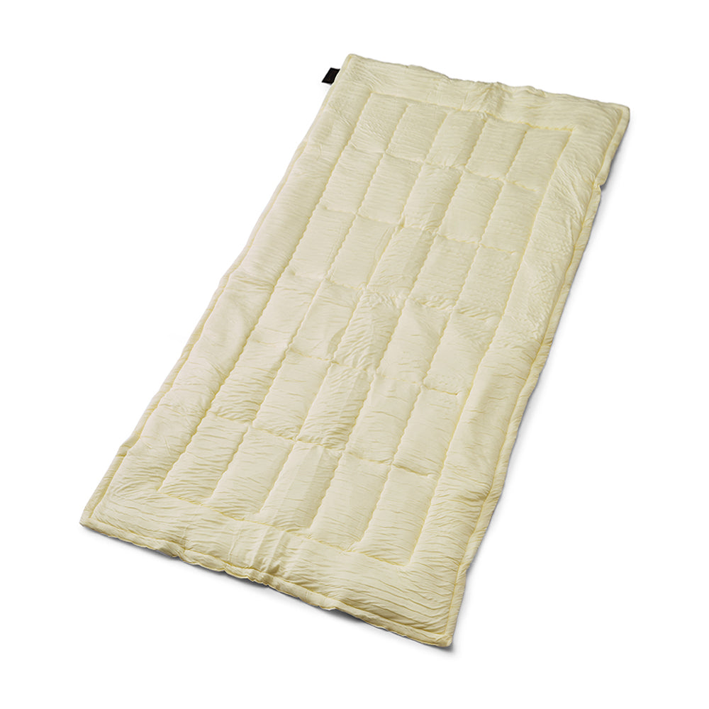 春、秋は肌掛けふとんとして1枚で。夏はやわらかい肌触りを生かして抱きまくらとして。冬は毛布のようにインナーケットとして使えます。
